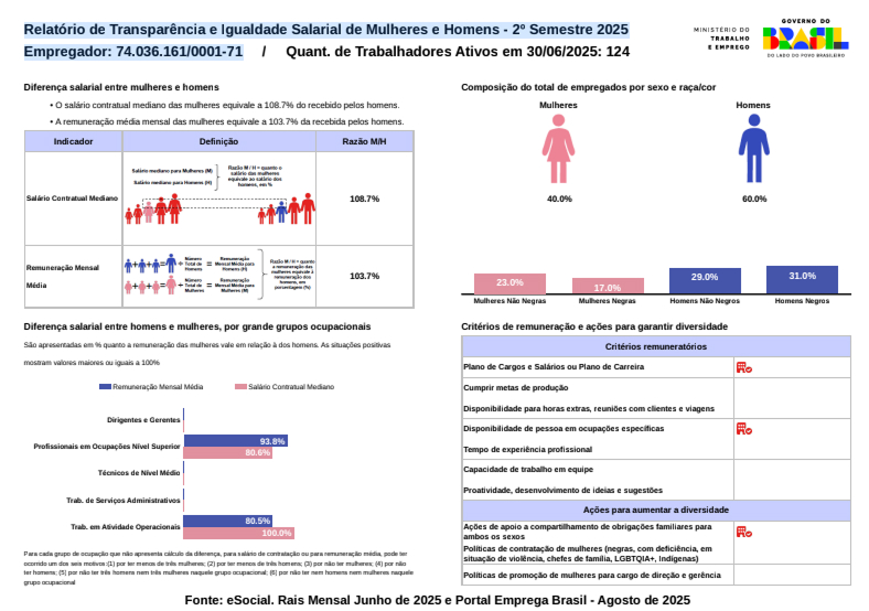 Relatório de Transparência e Igualdade Salarial de Mulheres e Homens - 2o Semestre 2025 Empregador: 74.036.161/0001-71