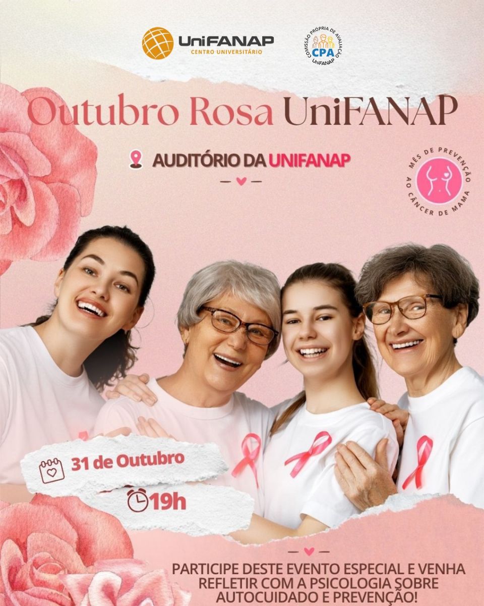 Neste mês de conscientização, a UNIFANAP convida você para um evento especial focado no Autocuidado, Prevenção e na Saúde Mental durante a jornada contra o câncer de mama.